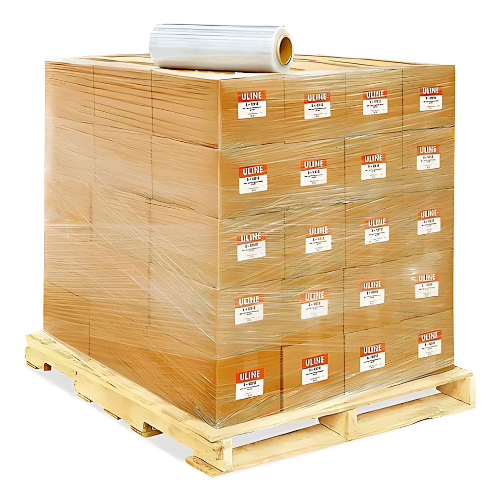 Filme em Polietileno Linear de Baixa Densidade (PEBDL) 100 % virgem, com 500 mm de largura, 25 micras de espessura e 200 m por bobina ( 4 kg). Possui aderência interna que dispensa fita adicional, elasticidade de até 200 % para paletização firme e resistência a rasgos, poeira e umidade.