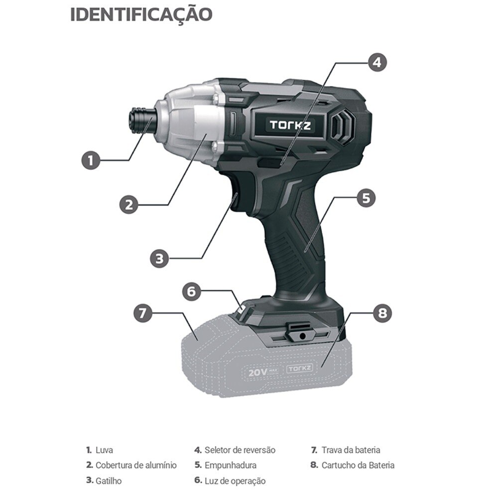 Chave de Impacto à Bateria Torkz TRB0001, Sem Bateria, 20 Volts