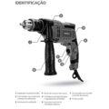Com um motor potente, a furadeira permite furações precisas em materiais resistentes como concreto, aço e pedras. Seu design ergonômico com cabo emborrachado proporciona conforto e aderência durante o uso.