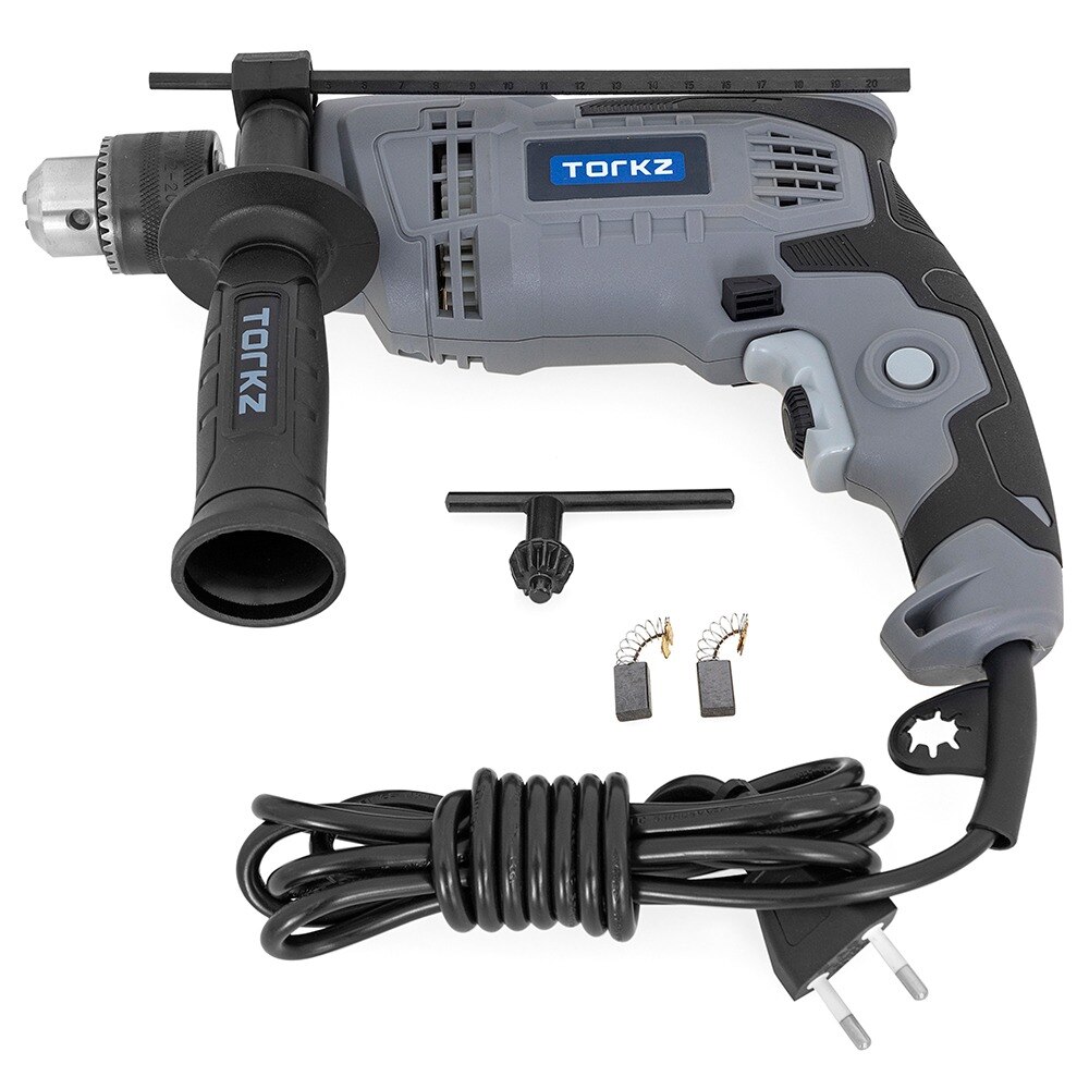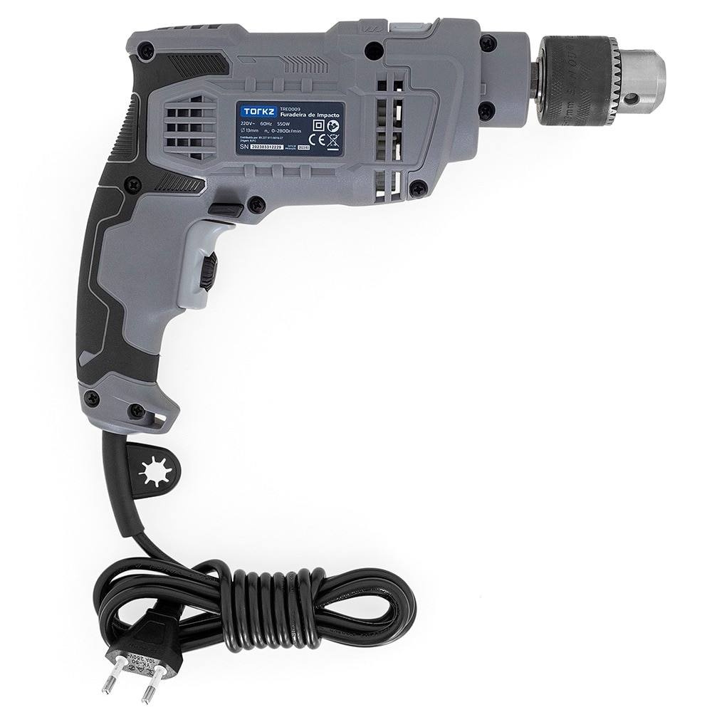A Furadeira de Impacto Profissional Torkz TRE0009 é uma ferramenta robusta e eficiente, indicada para profissionais que necessitam de alta performance em suas tarefas diárias. Com uma potência de 550W e um design ergonômico, ela é ideal para perfurações em diversos materiais, como tijolos, metal, madeira, cerâmica e plástico. Sua função de impacto permite um desempenho excepcional em alvenaria e concreto, enquanto o botão comutador para perfurações com e sem impacto, a velocidade variável e o sistema de reverso garantem flexibilidade nas operações.